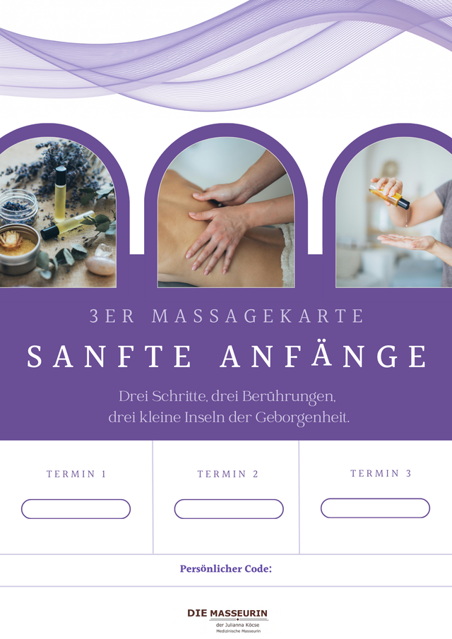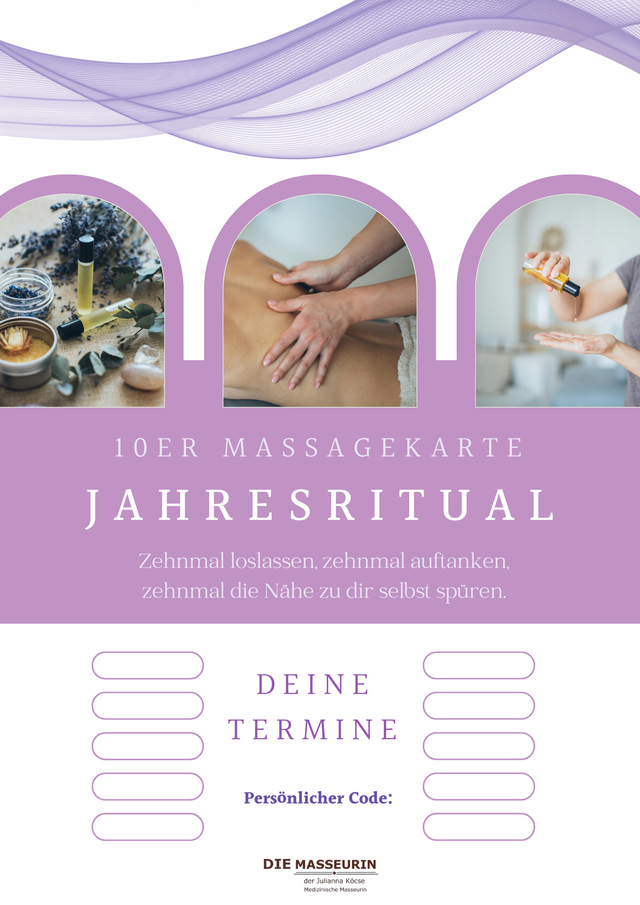 Mit diesen Massagekarten schenkst Du nicht nur mehrere Behandlungen, sondern gleich eine ganze Serie an persönlichen Auszeiten voller Ruhe und Wohlbefinden.